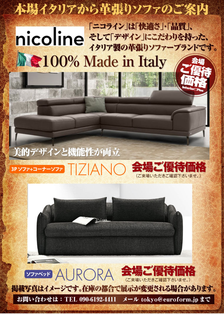 イタリア100%ソファの「ニコライン/nicoline」から、高機能ソファベッドが登場しました! イタリア高級ソファが軽く引っ張るだけで本格的なベッドに早変わり!座面や背もたれクッションを取り外す手間もありません。そのままベッドに変形します。シーツを付けたまま折りたたみ可能なので本当に引っ張るだけのお手軽さです。ソファ自体はイタリア100%クオリティの「ニコライン」をお楽しみいただけます。ソファ時にはこれがソファベッドだとは言わないと誰にもわかりません。ぜひ、この機会に会場にてお確かめ下さい。