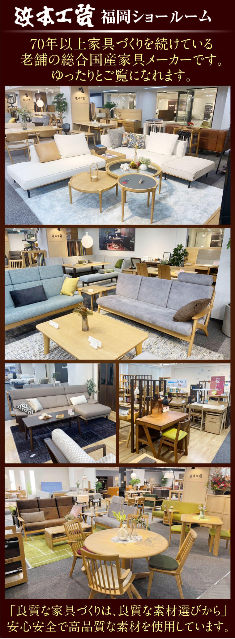 「浜本工芸」の注目のイベントは、「浜本工芸 福岡ショールーム」にて開催されます。70年以上家具づくりを続けている老舗の総合国産家具メーカーです。ゆったりとご覧になれます。