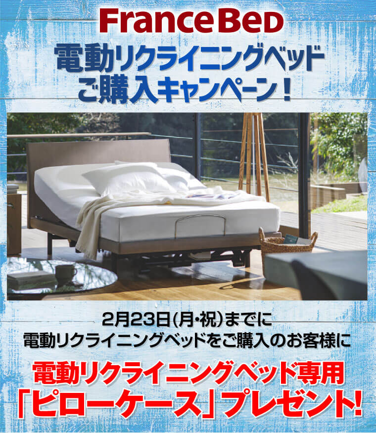 2月23日(月・振)までに電動リクライニングベッドをご購入のお客様に「電動リクライニングベッド専用ピローケース」プレゼント!