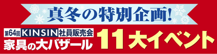 出品メーカー約50社の商品を「KINSIN社員販売会 家具の大バザール」限定の特別価格にてご奉仕いたします。