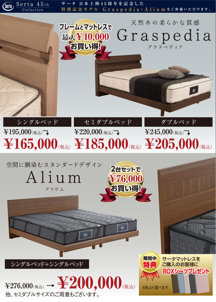 【期間中特典】サータマットレスをご購入のお客様に「BOXシーツ」プレゼント 5色より選べます。
