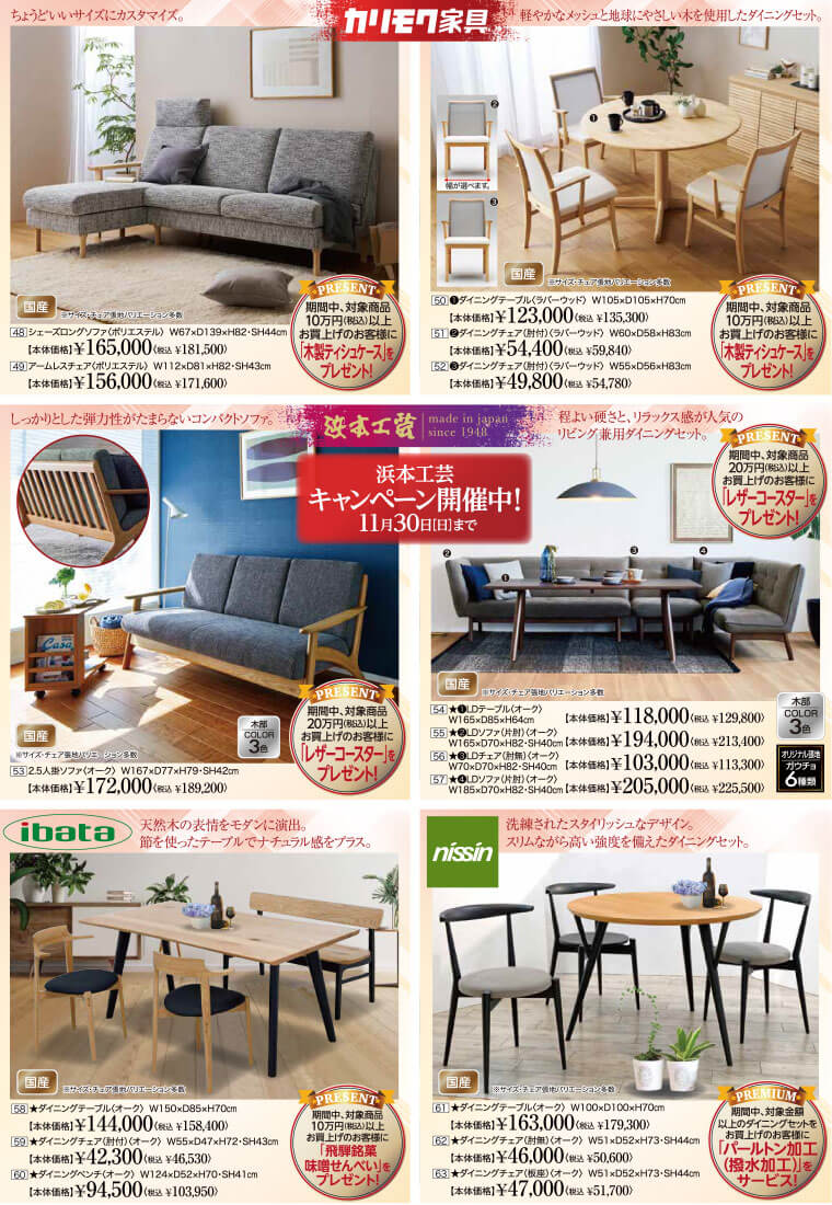 【イバタインテリア】期間中、対象商品10万円(税込)以上お買上げのお客様に「飛騨銘菓味噌せんべい」をプレゼント!