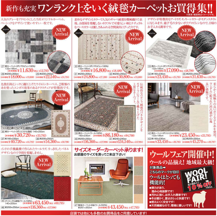 新作も充実。ワンランク上をいく絨毯カーペットお買得集!!